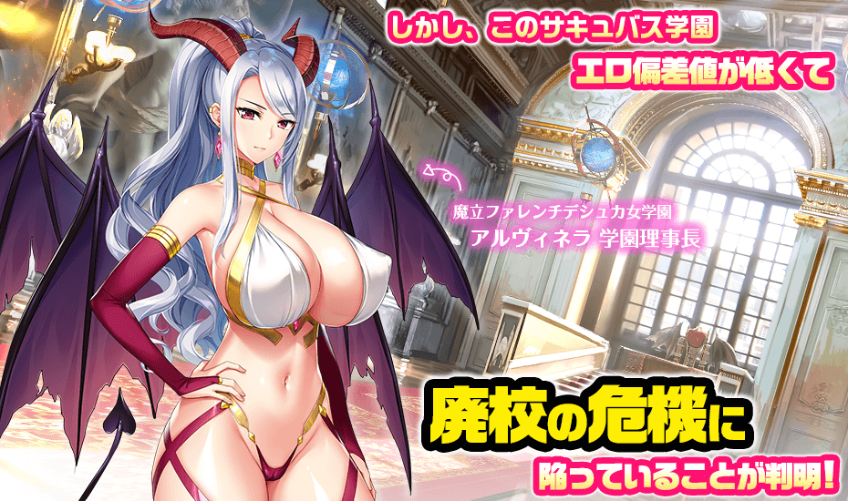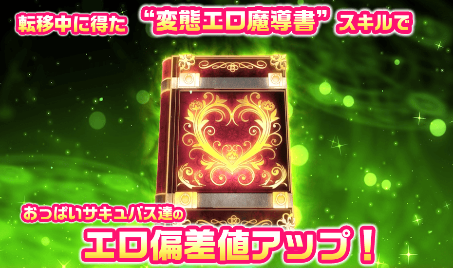 主人公が異世界にやってきてしまったのはサキュバス学園の理事長が 廃校寸前の学園再建のため召喚ガチャ儀式を行っていたとのこと。 原因は分からないが現世で召喚を行っていた主人公と時間差でシンクロしたのではないか? と豊満すぎるおっぱい揺らしながら推察を解くサキュバス学園の理事長。 さらに廃校の理由は学園の「エロ偏差値」が低いとのことで 我がサキュバスの国、リリンガルドの悶科省が一年後に廃校を決定! エロ偏差値を上げるためにはサキュバス学園の生徒達が「ドエロく」なって エロ偏差値及び、学園の魔力の源にもなっているドスケベラブパワー(仮)を上昇させなくてはならない。 俺におっぱいサキュバス達を満足させることができるのか? そんな主人公の心配をよそに理事長のサキュバススキル「セックス・スカウター」により いつのまにか魔神をも凌駕する膨大な「ドスケベ・スキル」が備わっていることを知る。 かくして主人公の伝説級の力を認めざるを得ない理事長のお墨付きと 転移中、勝手に備わった「エロ魔導書」の力を借りておっぱいサキュバス学園廃校の危機を救うこととなった主人公。 しかし、一人前のサキュバスにすると言うことは異性を誘惑するということ。 この魔導書があれば……サキュバス達と学園を征服することが可能……か! せっかく召喚ガチャで呼ばれたおっぱい異世界!